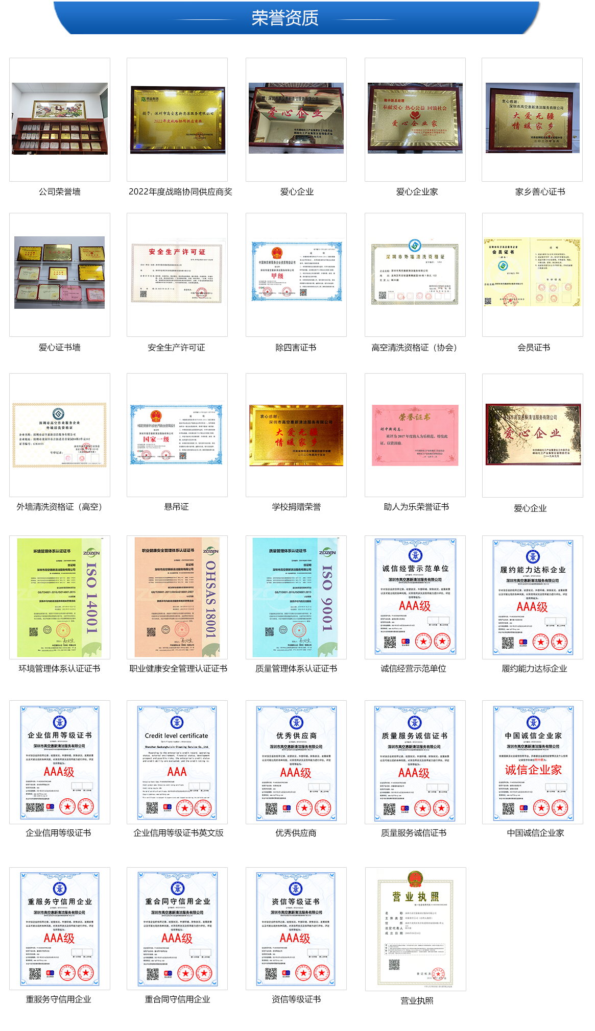 深圳外墻清洗公司以“誠(chéng)實(shí)的服務(wù)理念和精益求精”為質(zhì)量方針,以市場(chǎng)為導(dǎo)向,以圍繞客戶的需求為中心,堅(jiān)持“顧客至上,服務(wù)第一”的服務(wù)標(biāo)準(zhǔn),以合理的價(jià)格,科學(xué)規(guī)范的管理機(jī)制,堅(jiān)持穩(wěn)步經(jīng)營(yíng),不斷提高與完善自身的管理及服務(wù)水平。我們秉承“服務(wù)、質(zhì)量、誠(chéng)信”的企業(yè)宗旨,以“客戶滿意最大化”為企業(yè)服務(wù)目標(biāo),為美化城市、提高市民生活質(zhì)量做出了巨大貢獻(xiàn)。 深圳外墻清潔公司擁有一支精干高效的專業(yè)化管理人員隊(duì)伍和一批專業(yè)技術(shù)設(shè)備、設(shè)施;多年來(lái)主要承接了高級(jí)樓宇、玻璃幕墻清、洗住宅區(qū)、大型超市、賓館酒店、工廠醫(yī)院、市政等工程;大廈幕墻清洗、地毯清潔、地面打蠟、拋光,云石翻新等。幾年來(lái)隨著公司市場(chǎng)份額的擴(kuò)大,業(yè)績(jī)迅猛提升,服務(wù)質(zhì)量不斷提高,先后得到了市有關(guān)部門、行業(yè)協(xié)會(huì)的高度評(píng)價(jià),同時(shí)也贏得了廣大客戶對(duì)本公司的信賴與稱贊,在同行業(yè)中樹立了良好的口碑和信譽(yù)。
